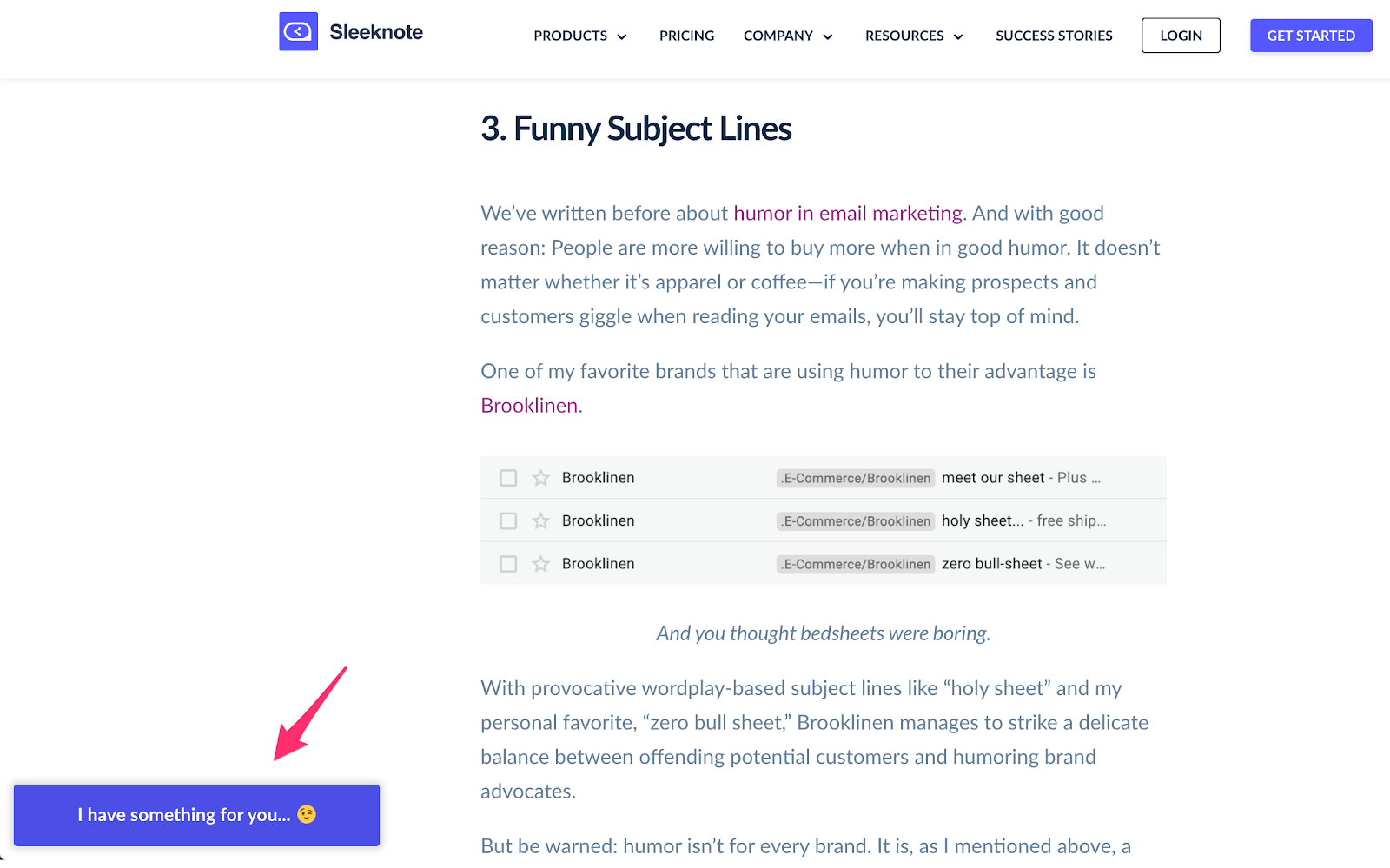 So rather than using a traditional popup, they took a unique approach that I’ve never seen before.