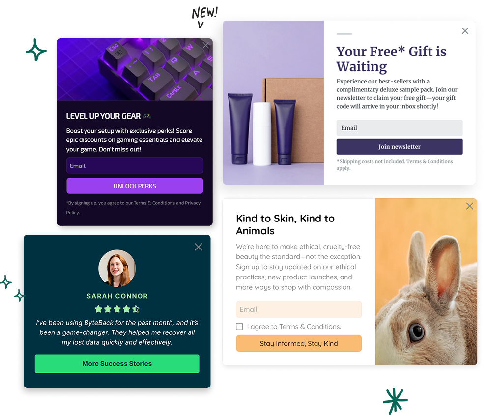 Gamification: Beyond standard Spin-to-Win, Sleeknote offers Scratch Cards, Daily Offers, and a Seasonal Campaign Calendar to keep your site experience fresh all year.