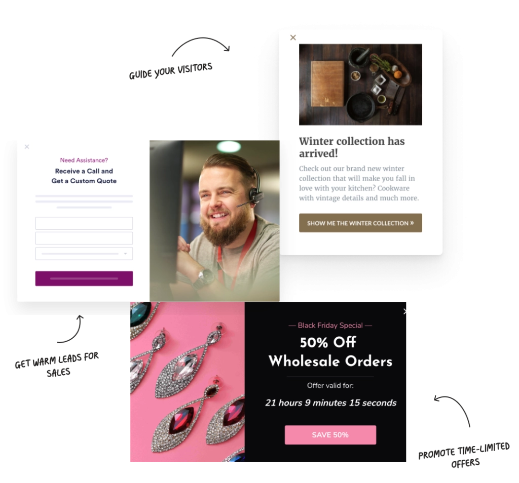 Popupy na stronie to nie tylko powiększanie listy mailingowej. Ze Sleeknote z łatwością stworzysz różne popupy, dopasowane do tego, na jakim etapie podróży zakupowej są Twoi klienci. Niezależnie od tego, czy chcesz zebrać adres e-mail osoby odwiedzającej stronę po raz pierwszy, czy zaprosić powracającego potencjalnego klienta do kontaktu, Sleeknote ma wszystko, czego potrzebujesz, aby zarządzać i rozwijać prosperującą firmę B2B. Nie musisz nam wierzyć na słowo. Wypróbuj Sleeknote bez ryzyka. (Nie wymagamy karty kredytowej.)