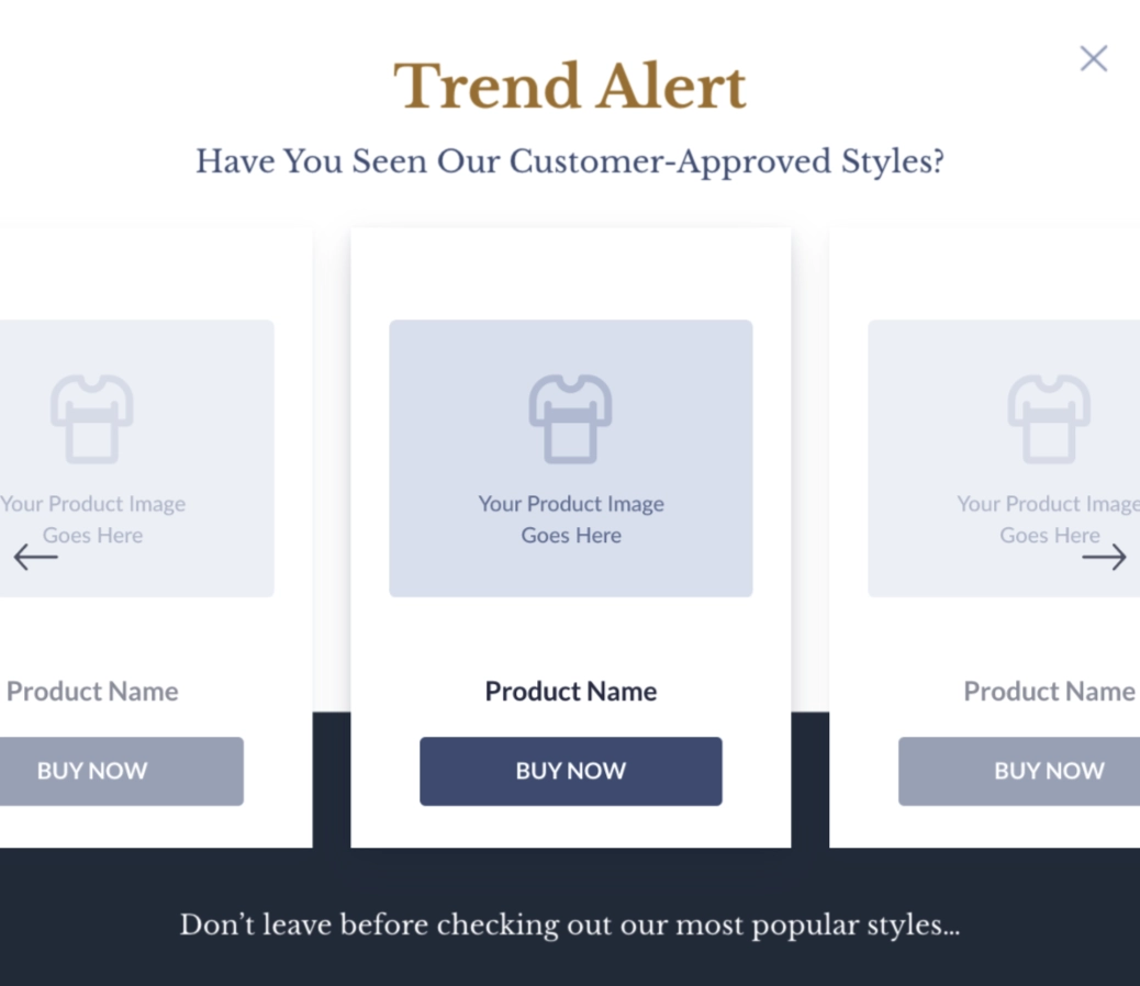 With our product recommendations and dynamic text replacement features, you never have to edit this popup again—it will keep promoting the current month’s top products.