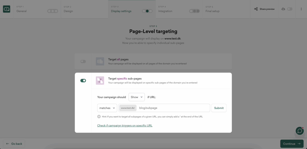Display the campaign only on your thank-you page.
