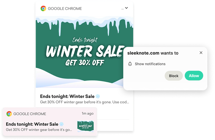 With web push notifications, you can reach opted-in visitors when it matters. It’s a good fit for product or content launches, brand or campaign announcements, and timely reminders.